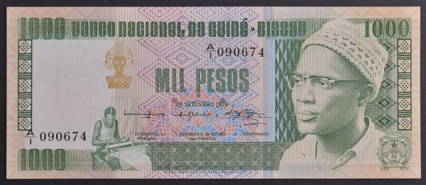 • Rara Cédula Estrangeira, GUINÉ BISSAU, Valor 1000 Pesos, Data 24/09/1978, Flor de Estampa.