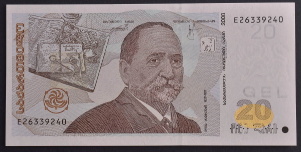 • Cédula Estrangeira, GEORGIA, Valor 20 Laris, Data 2008, Flor de Estampa.