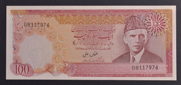 • Cédula Estrangeira, PAQUISTÃO, Valor 100 Rupees, Data 12/07/1976, Flor de Estampa.