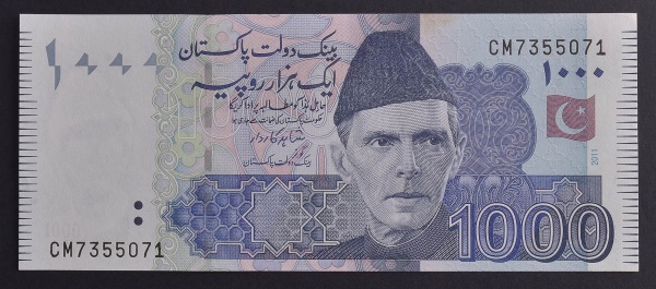 • Cédula Estrangeira, PAQUISTÃO, Valor 1000 Rupees, Data 2011, Flor de Estampa.