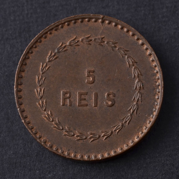 • Moeda Estrangeira, ÍNDIA PORTUGUESA, Valor 5 Reis, Ano 1871, Cobre, Soberba/FC.