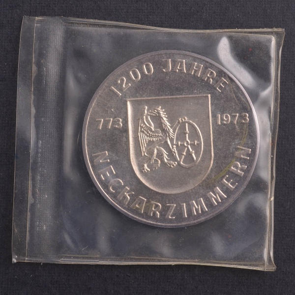 • Medalha Comemorativa, 1200 Anos do Município Alemão de Neckarzimmern -  773/1973, Flor de Cunho.