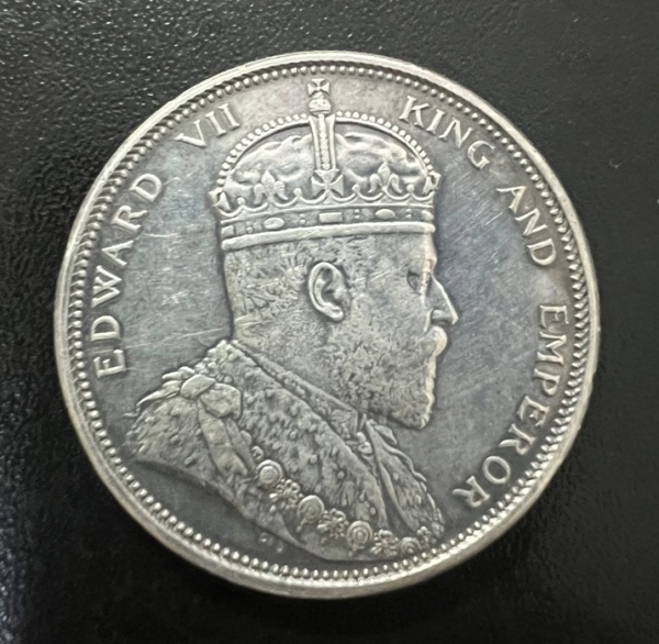 • Moeda Estrangeira, STRATS SETTLEM, Valor 1 Dollar, Ano 1904, Prata, Peso 26,6 g, Diâmetro 37 mm, MBC/Soberba.