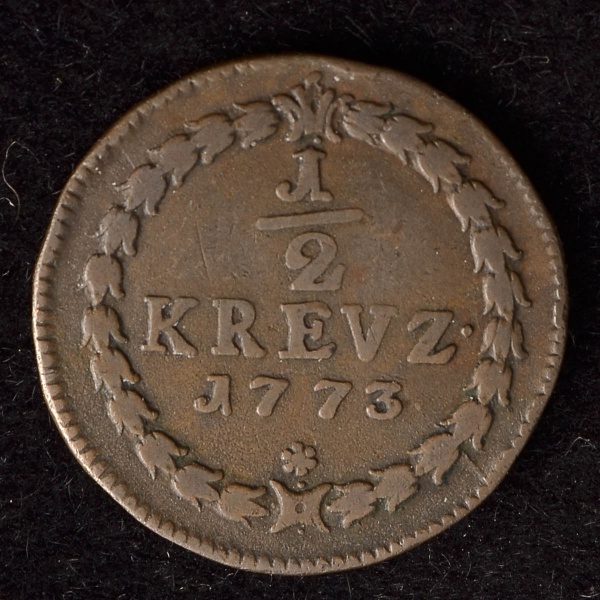 • Moeda Estrangeira, PFALZ - ELECTORAL - PFALZ - Estado Alemão, Valor 1/2 Kreuzer, Ano 1773, Cobre, Soberba.