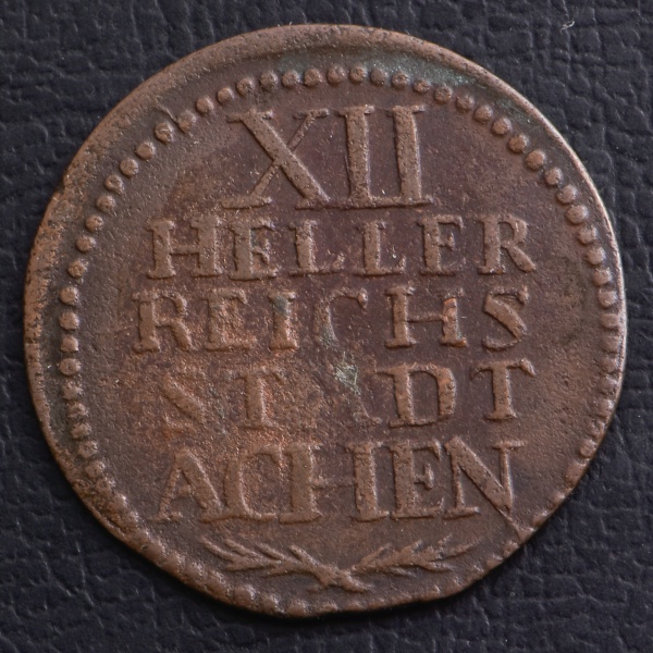• Moeda Estrangeira, Estado Alemão - AACHEN, Valor 12 Heller, Ano 1697 GS, Cobre, Alta Cotação nos Catálogos Internacionais, Difícil Encontrar neste Estado de Conservação - Soberba.
