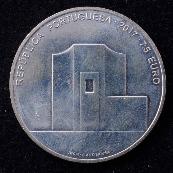 • Moeda Estrangeira, PORTUGAL, Arquiteto Álvaro Siza, Valor 7,50 Euros, Ano 2017, Prata, Flor de Cunho.