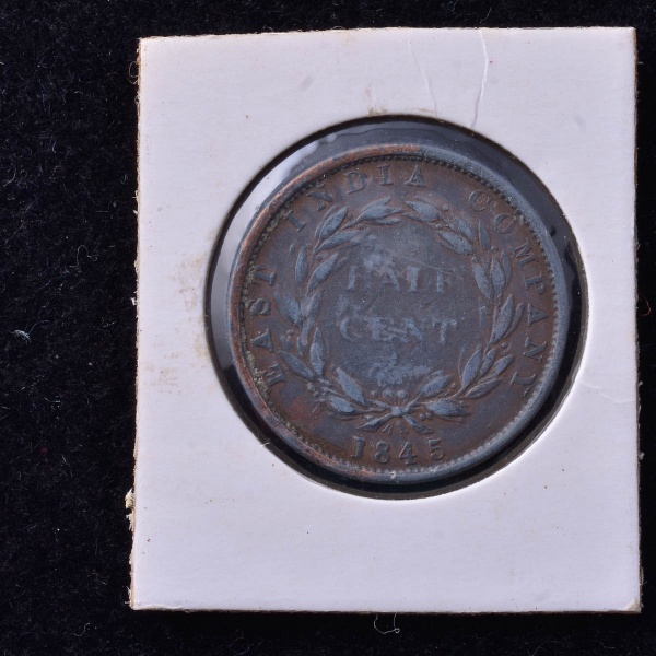 • Moeda Estrangeira, STRAITS SETTLEMENTS, Valor 1/2 Cent, Ano 1845, Cobre, Soberba.
