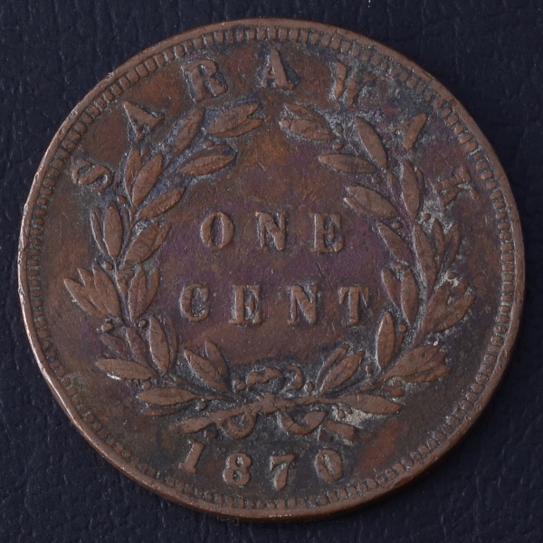 • Moeda Estrangeira, SARAWAK, Valor 1 Cent, Ano 1870, Cobre, Muito Bem Conservada.