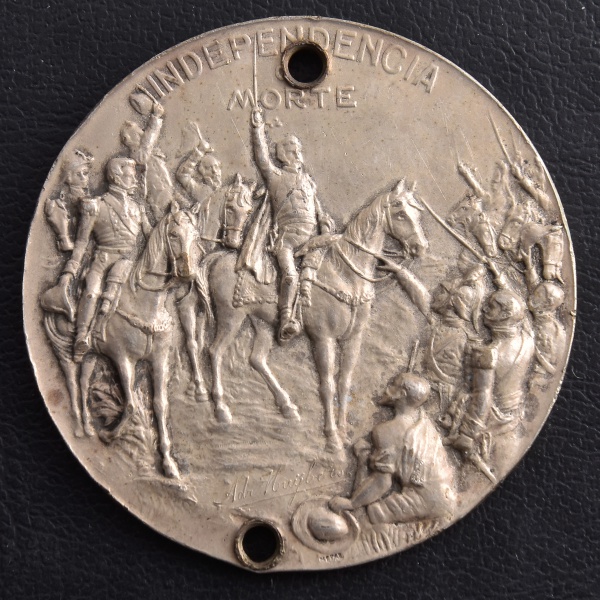 • Rara Medalha Comemorativa do Brasil, Efígie de José Bonifácio - Glória aos Fundadores da Independência " Independência ou Morte ", Nome do Homenageado Escrito com Letras Puncionadas no Caso TARGINO PEDROZA, Data 1922, Gravador Hungerbuehler, Peso 57 g, Diâmetro 51 mm, com Furos - Muito Bem Conservada.