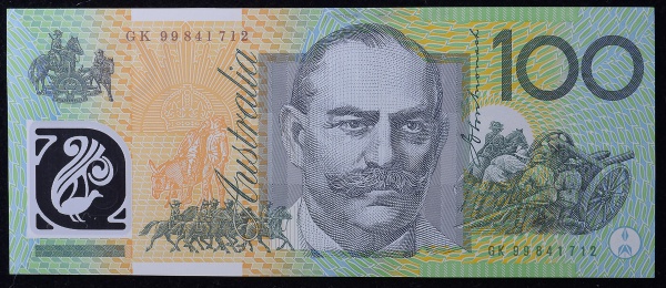 • Rara Cédula Estrangeira, AUSTRÁLIA, Valor 100 Dollars, Data 1999, Polímero - Flor de Estampa.
