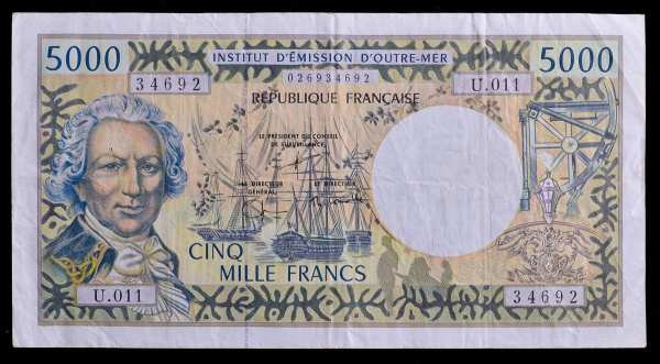 • Cédula Estrangeira, TAHITI - Institut D´Emission D´Óutre-Mer,  Valor 5000 Francos, Data 1971/1985, Muito Bem Conservada