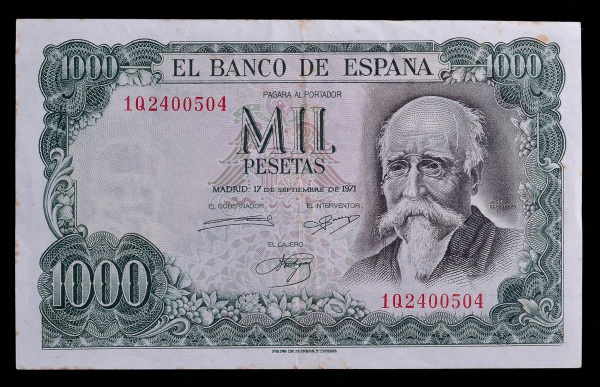 • Cédula Estrangeira, ESPANHA, Valor 1000 Pesetas, Data 17/09/1971, Soberba..