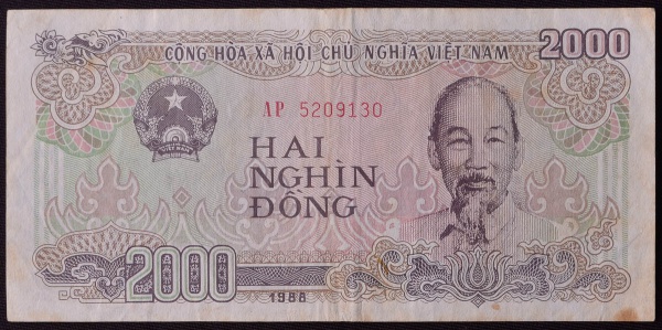 • Cédula Estrangeira, VIETNÃ, Valor 2.000 Dong, Ano 1988, Muito Bem Conservada.