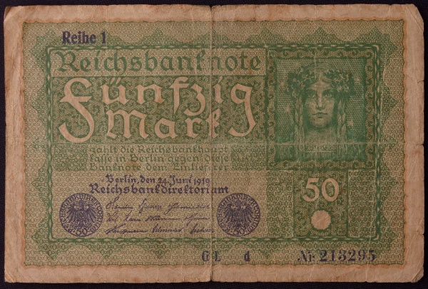 • Cédula Estrangeira, ALEMANHA, Valor 50 Mark, Data 24/06/1919, Muito Bem Conservada.
