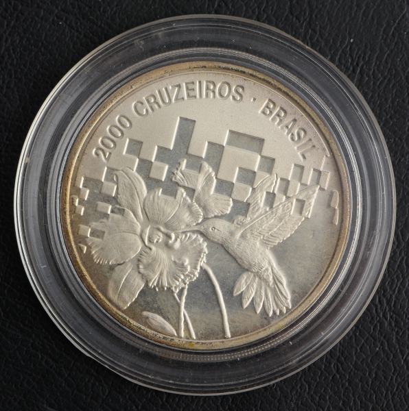 • Moeda Brasileira, Comemorativa ECO - Meio Ambiente 1992, Valor 2000 Cruzeiros, Data 1992, Prata, Peso 27 g, Estojo Original do Banco Central, Flor de Cunho.
