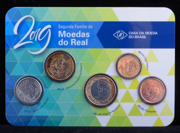 • Numismática: Conjunto Moedas do Real,  2ª Família, Série 2019, Casa da Moeda do Brasil, Cartela Original, Flor de Cunho.