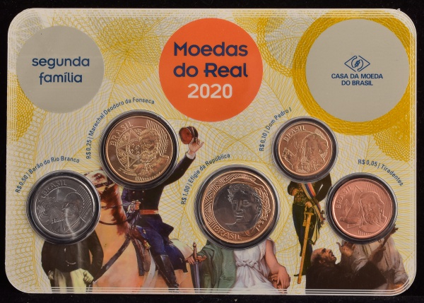 • Set Completo com as Moedas da Segunda Família do Real, Data 2020, Acompanha Cartela Explicativa Original da Casa da Moeda do Brasil, Tiragem 5000 Unidades, Brilho Original da Cunhagem - Flor de Cunho.
