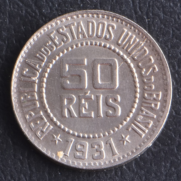 • Moeda do Brasil, República, Valor 50 Reis, Ano 1931 ( Escassa ), Níquel, Flor de Cunho.