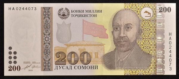 • Rara Cédula Estrangeira, TADJIQUISTÃO, Valor 200 Somoni, Ano 2010, Flor de Estampa.