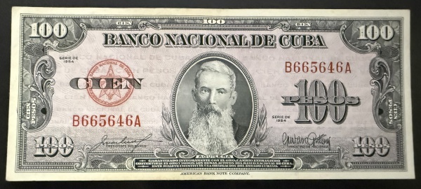 • Cédula Estrangeira, BANCO NACIONAL DE CUBA, Valor 100 Pesos, Série 1954, Soberba.