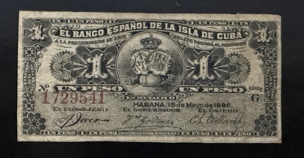 • Cédula Estrangeira, EL BANCO ESPANHOL de LA ISLA DE CUBA, Valor 1 Centavo, Data 15/05/1896, Muito Bem Conservada.