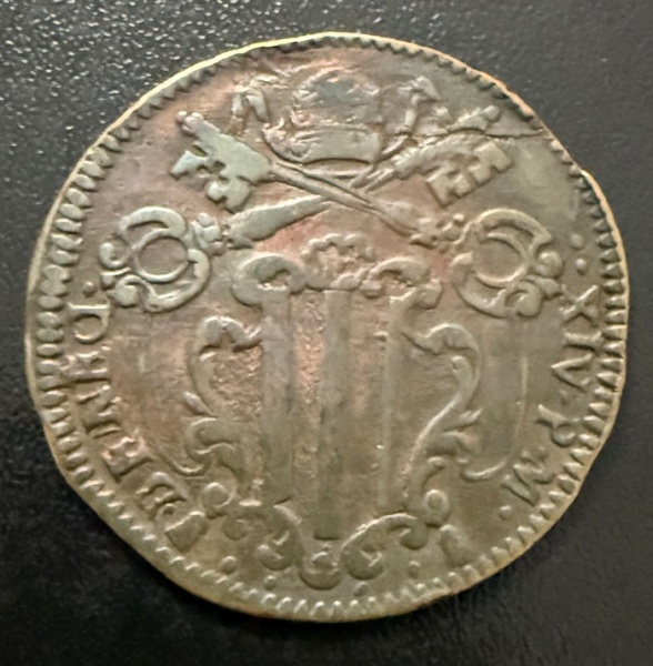 • Moeda Estrangeira, ESTADO ITALIANO - ESTADO PAPAL GUBBIO, Valor Baiocco, Ano 1755, Cobre, Muito Bem Conservada.