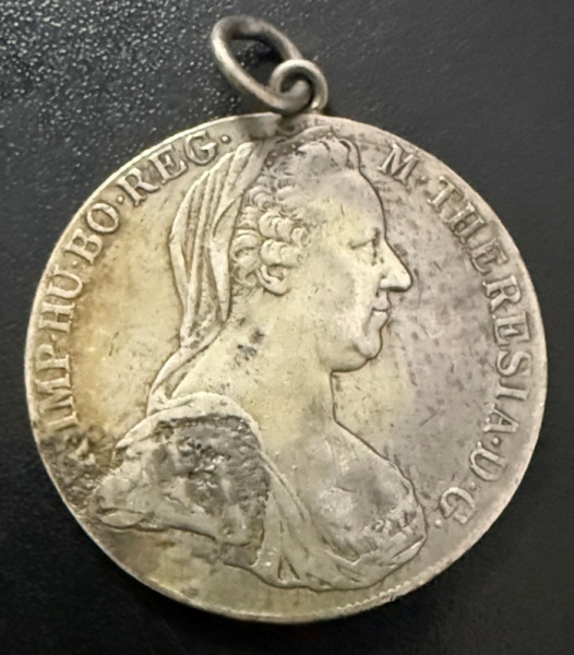 • Moeda Estrangeira, ÁUSTRIA - BURGAU, Valor Thaler, Ano 1780, Prata, Peso 28 g, Diâmetro 40 mm, com Olhal, Muito Bem Conservada.
