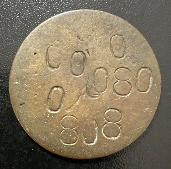 • Moeda Brasileira, Carimbo Particular sobre Moeda de Cobre do Império, Peça para Estudo, Muito Bem Conservada.