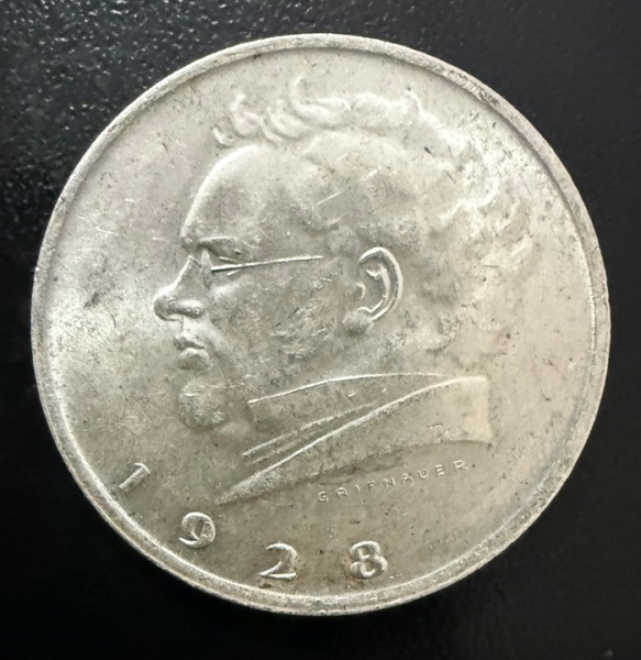 • Moeda Estrangeira, ÁUSTRIA, Comemorativa ao Centenário da Morte do Compositor Franz Scubert,Valor 2 Schilling, Ano 1928, Prata, Peso 12g, Diâmetro 30 mm, Flor de Cunho.