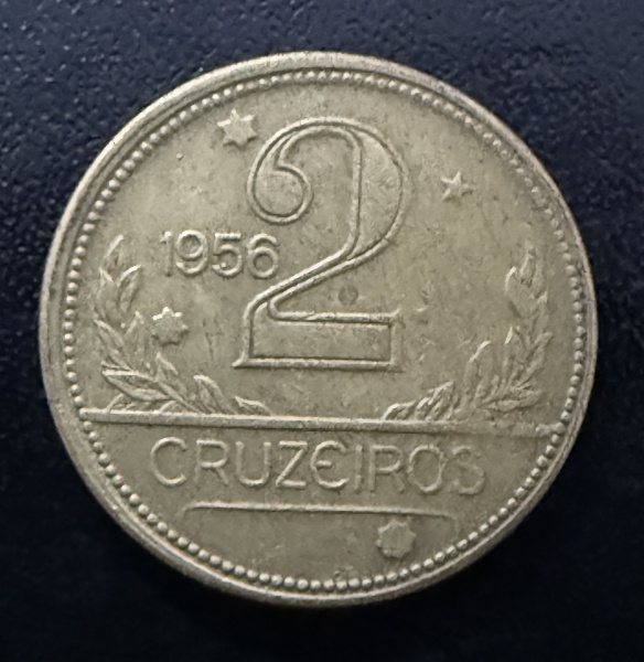 • Moeda Brasileira, Valor 2 Cruzeiros, Ano 1956 ( mais Rara da Série ), Bronze Alumínio, MBC/Soberba.