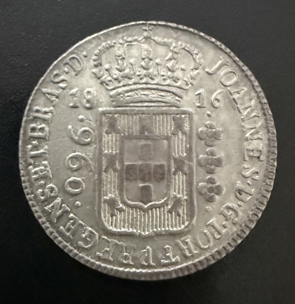• Moeda Brasileira, Colonial, Valor 960 Reis, Ano 1816, Casa da Moeda da Bahia, Variante e Base para Estudos, Prata, Soberba.