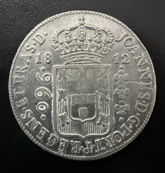 • Moeda Brasileira, Colonial, Valor 960 Reis, Ano 1812, Casa da Moeda da Bahia, Variante e Base para Estudos, Prata, Soberba.