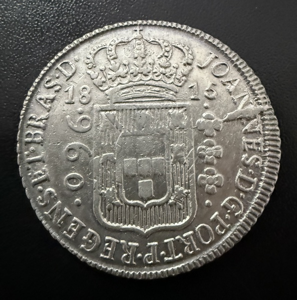 • Moeda Brasileira, Colonial, Valor 960 Reis, Ano 1815, Casa da Moeda da Bahia, Variante e Base para Estudos, Prata, Soberba.