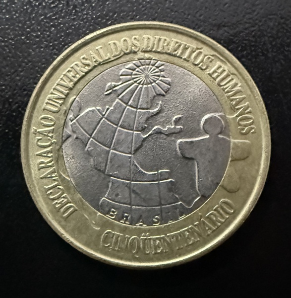 • Moeda Brasileira, Comemorativa aos 50 Anos dos Direitos Humanos, Valor 1Real, Ano 1998, Bimetálica, Soberba.