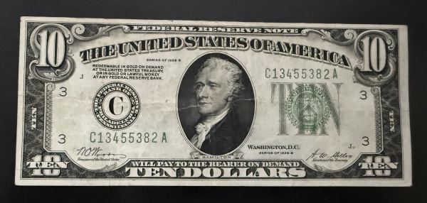 • Cédula Estrangeira, USA, Valor 10 Dollars, Série 1928 B, Muito Bem Conservada.