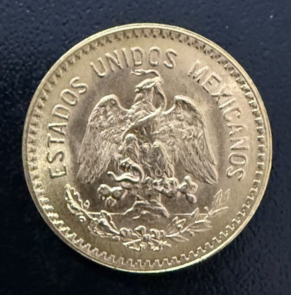 • Moeda Estrangeira, MÉXICO, Valor 10 Pesos,  Ano 1959, Ouro, Peso 8,3 g, Diâmetro 22 mm, Flor de Cunho.