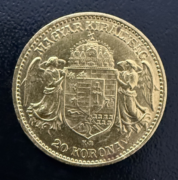 • Moeda Estrangeira, HUNGRIA, Valor 20 Korona,  Ano 1915, Ouro, Peso 6,7 g, Diâmetro 21 mm, Soberba.