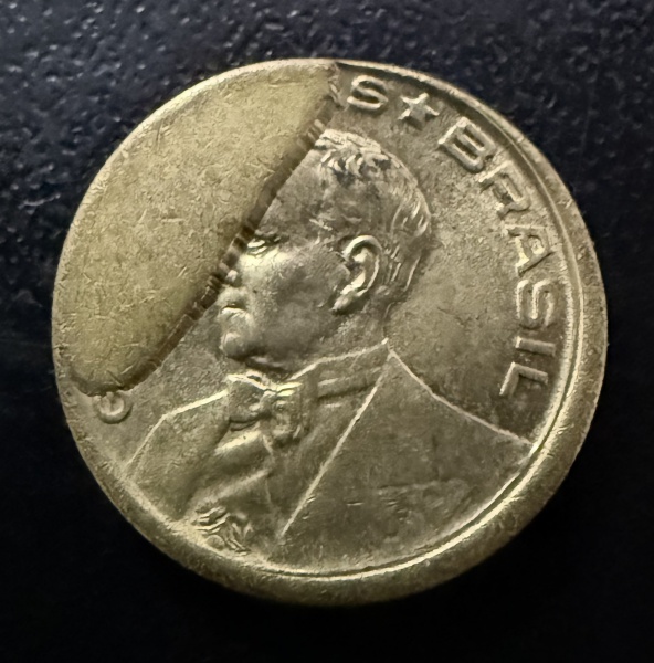 • Moeda Brasileira, Erro de Cunhagem - Excesso de Metal, Valor 10 Centavos, Ano 1946, Bronze Alumínio, Soberba.