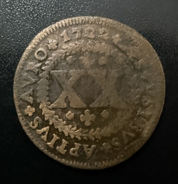 • Moeda Brasileira, Império, Valor XX Reis, Ano 1722, Moeda Regional - Cunhada em Lisboa para Minas Gerais, Cobre, Muito Bem Conservada.