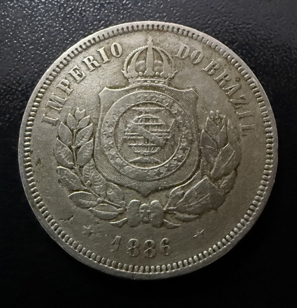 • Moeda Brasileira, Império, Valor 200 Reis, Ano 1886 ( Escassa), Níquel, Muito Bem Conservada.