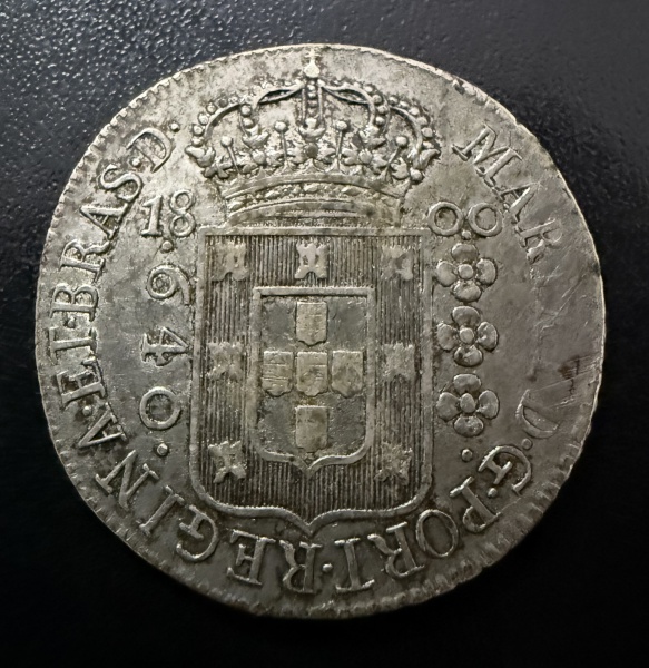 • Moeda Brasileira, Colonial, Valor 640 Reis, Ano 1800, Casa da Moeda do Rio de janeiro, Prata, Peso 17,8 g, Soberba.