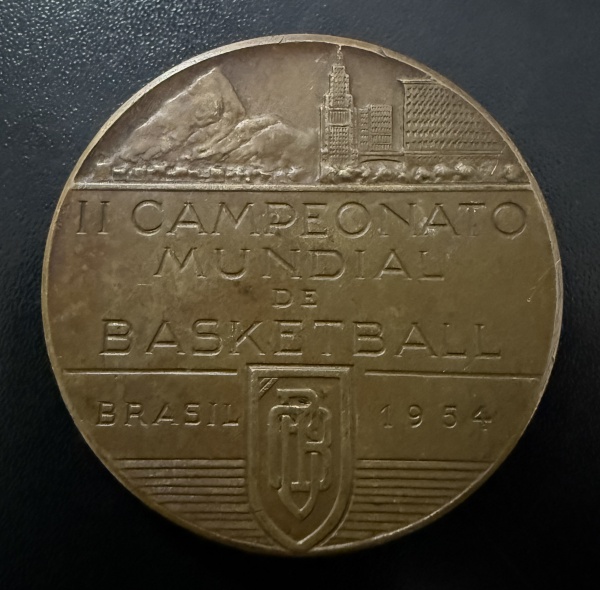 • Medalha Comemorativa, II Campeonato Mundial de Basquete - Brasil, Ano 1954, Bronze, Flor de Cunho.
