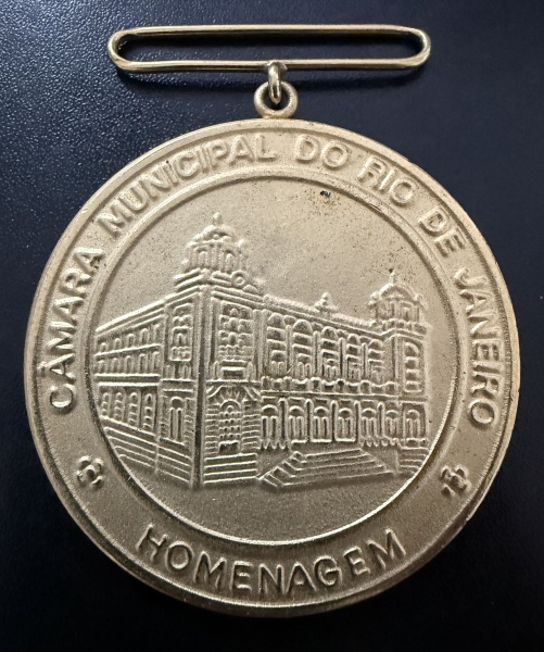 • Medalha Comemorativa, Medalha Pedro Ernesto - Homenagem a Câmara Municipal do Rio de Janeiro, não Datada, sem Fita, Módulo Maior, Bronze, Flor de Cunho.